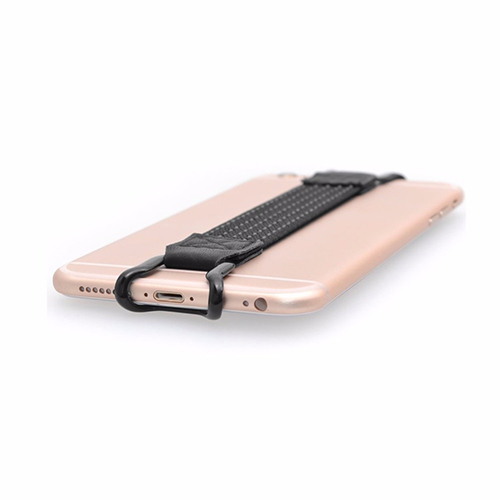 Plaats deze elastische houder om uw telefoon om deze met één hand te kunnen bedienen. De houder wordt om de telefoon bevestigd met twee haken die zijn voorzien van een zachte rubberen coating.