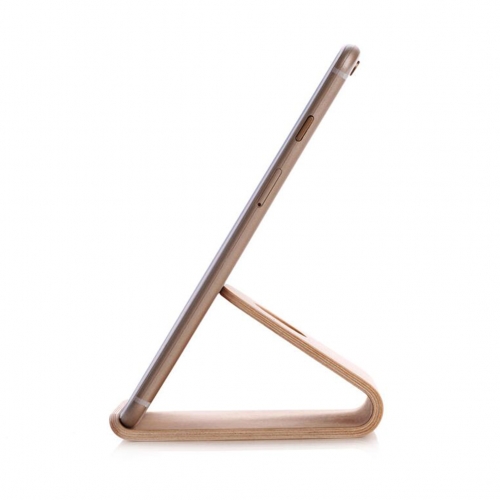 Deze telefoonhouder van walnoothout heeft een prachtig ontwerp. De simplistische vorm en het natuurlijke materiaal geven de standaard een chique uitstraling. De telefoon kan horizontaal of verticaal geplaatst worden.